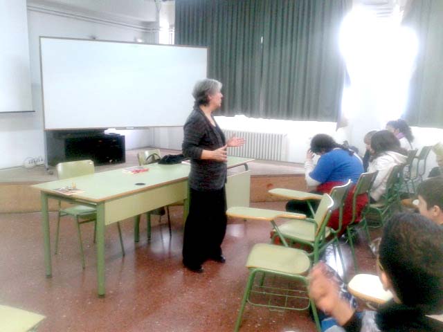 Vam parlar sobretot de la seva vida com a escriptora. Ens va explicar que havia escrit un munt de llibres tant per a adults com per a adolescents i contes infantils. Ens va mostrar algunes de les diferents edicions de la novel·la que havíem llegit nosaltres a classe, Com un miratge. Està traduït a l’eusquera, el catellà i el francès .